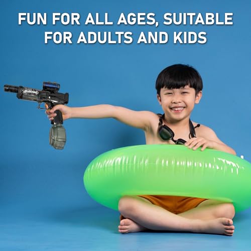 Realistic LED Light Effects. Experience the thrill of battle with stunning LED light effects. The integrated LED lights synchronize with the water shots, providing a visually exciting and immersive play experience, perfect for day or night use.
