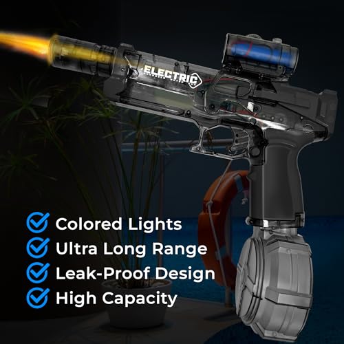 Electric Water Gun with Realistic Flame Effect, High-Capacity Squirt Gun for Summer Outdoor Fun at The Beach, Pool, or Parties – Suitable for Adults and Kids (Black)