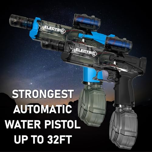 Powerful Electric Drive. Dominate your water battles with a powerful electric drive system that delivers strong and consistent water streams. With an enhanced shooting range of up to 30 feet, you can hit targets from a distance, giving you a competitive edge